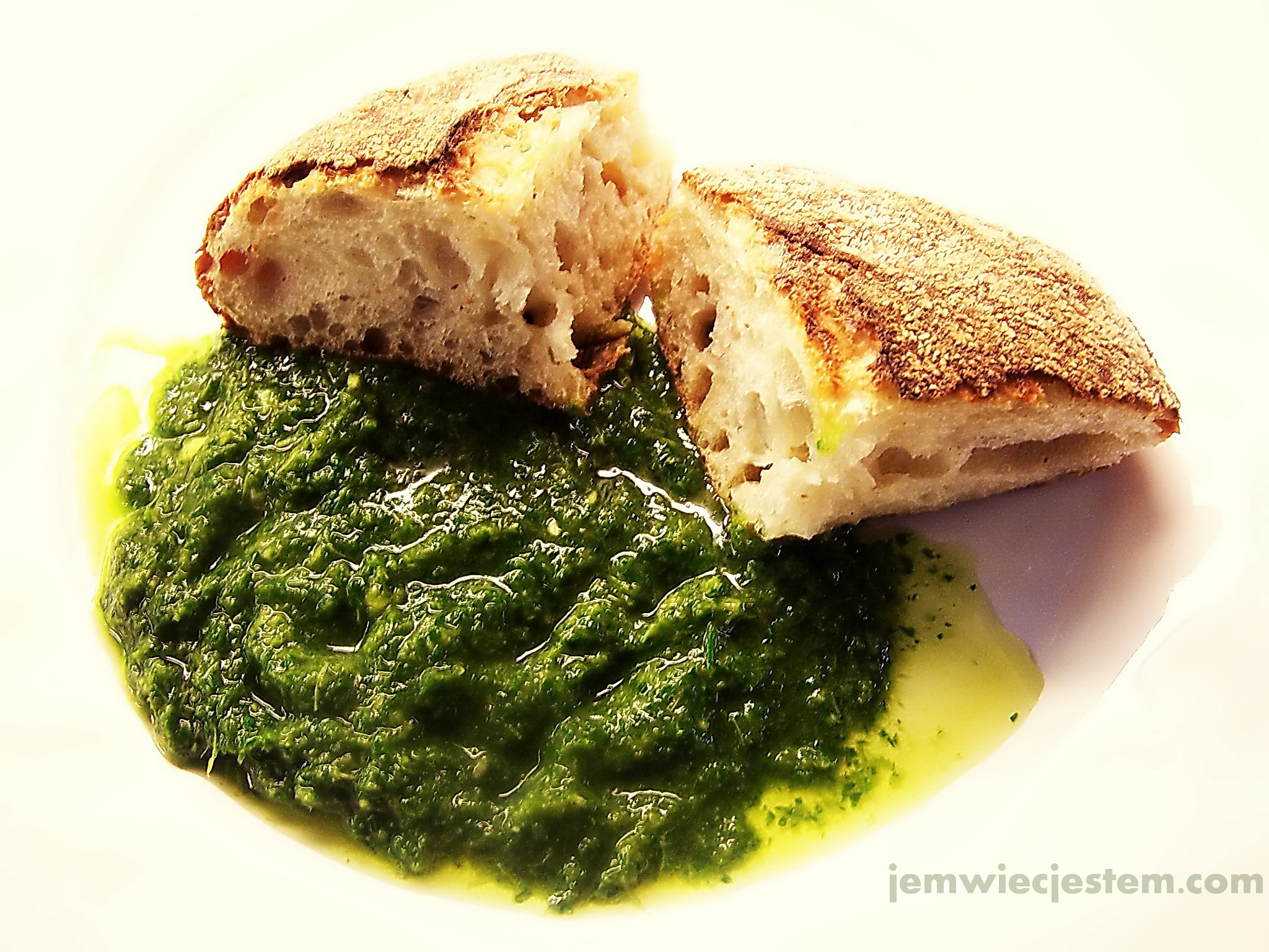 02 25 11 chimichurri (4) JWJCzasami dwa, trzy najprostsze składniki mogą stworzyć najbardziej niezapomniany smak. Tak jest w przypadku Chimichurri, argentyńskiego sosu-przystawki.  Zazwyczaj podawany jest ze świeżą bagietką lub chlebem do maczania w nim. W argentyńskich  restauracjach podaje się go jako darmowy starter przed zamówieniem posiłku. Tradycyjnie używany w Argentynie jako dodatek do grilowanych mięs. Chimichurri stał się gwoździem programu na niemal każdej, organizowanej przeze mnie imprezie.  Każdy z jakiegoś powodu kocha ten sos. Chimichurri nawraca największych niejadków świeżych warzyw, wliczając w to kilku moich znajomych płci męskiej, którzy po jego spróbowaniu, zakończyli na skrupulatnym wybieraniu resztek z naczynia, w którym był podany. Cały sekret tego sosu to 3 proste składniki: zielona natka pietruszki, czosnek i oliwa z oliwek.