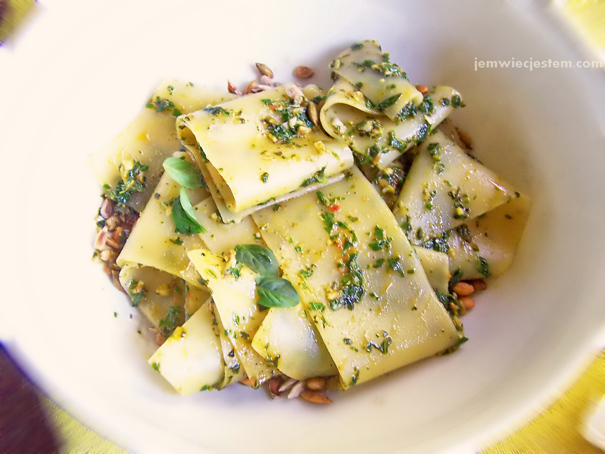Pasta jajeczna z sosem a’la pesto i prażonym słonecznikiem