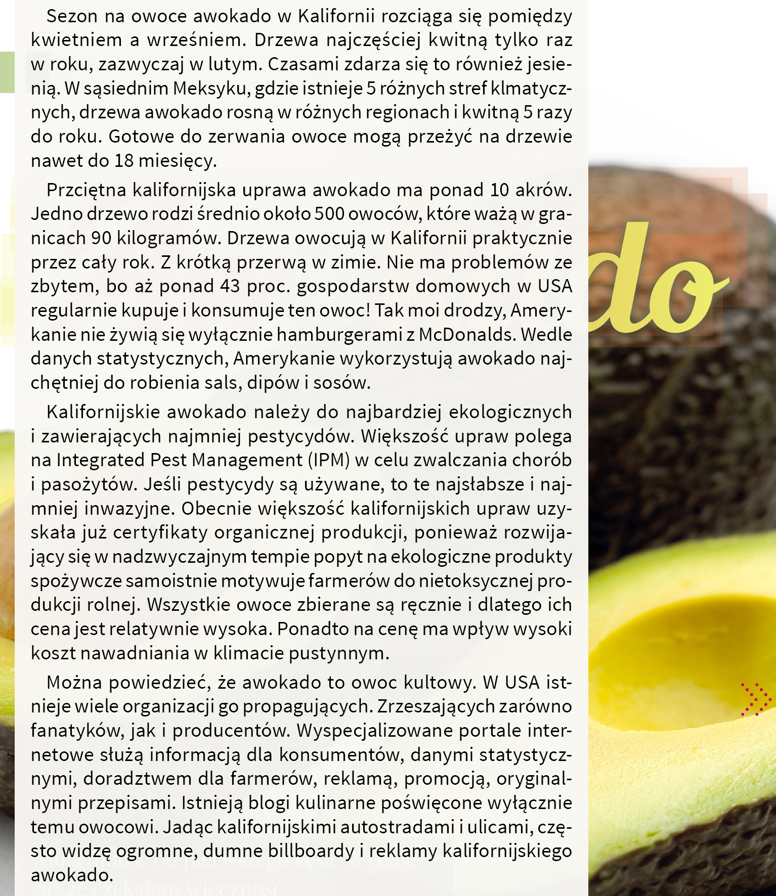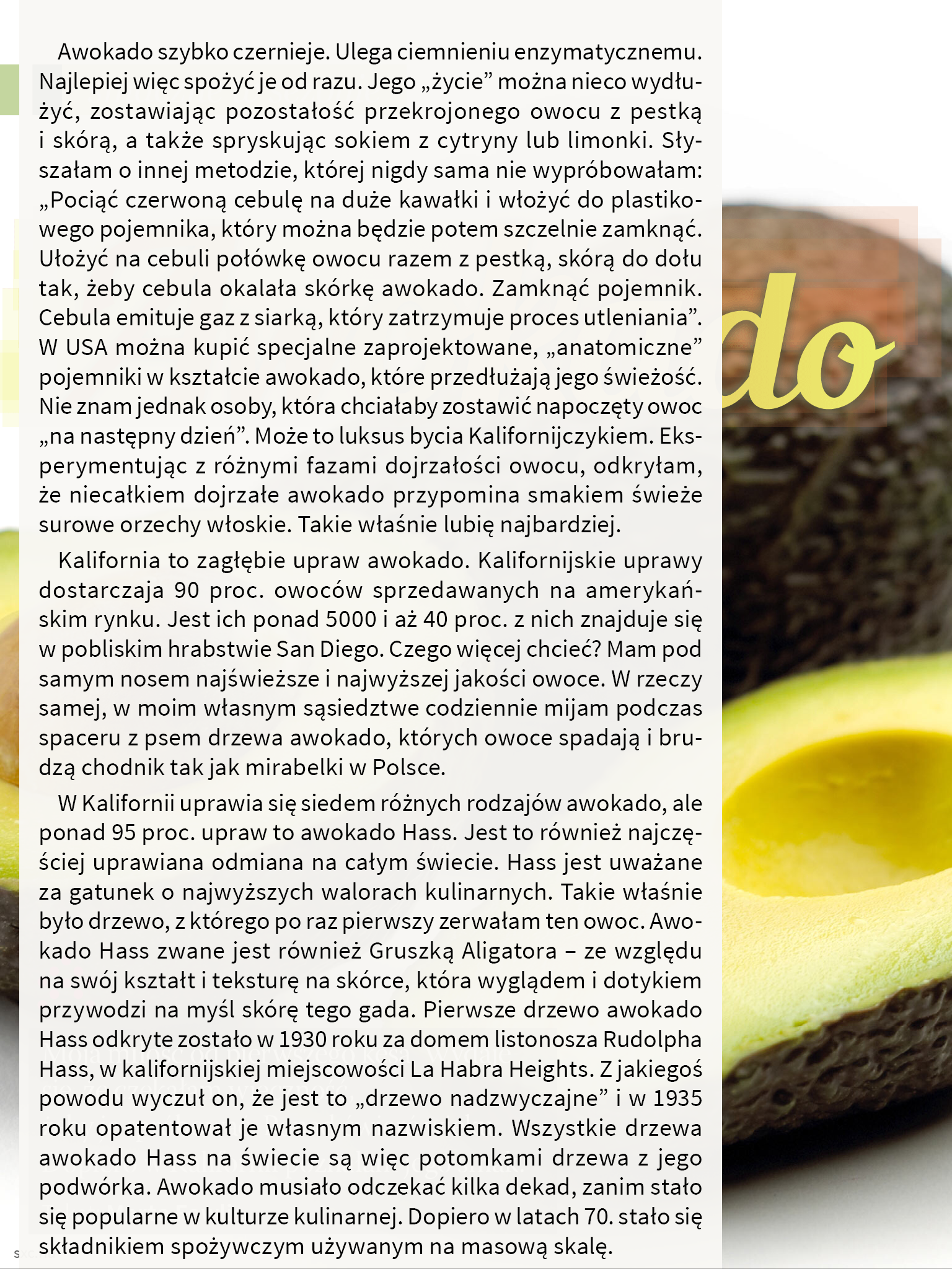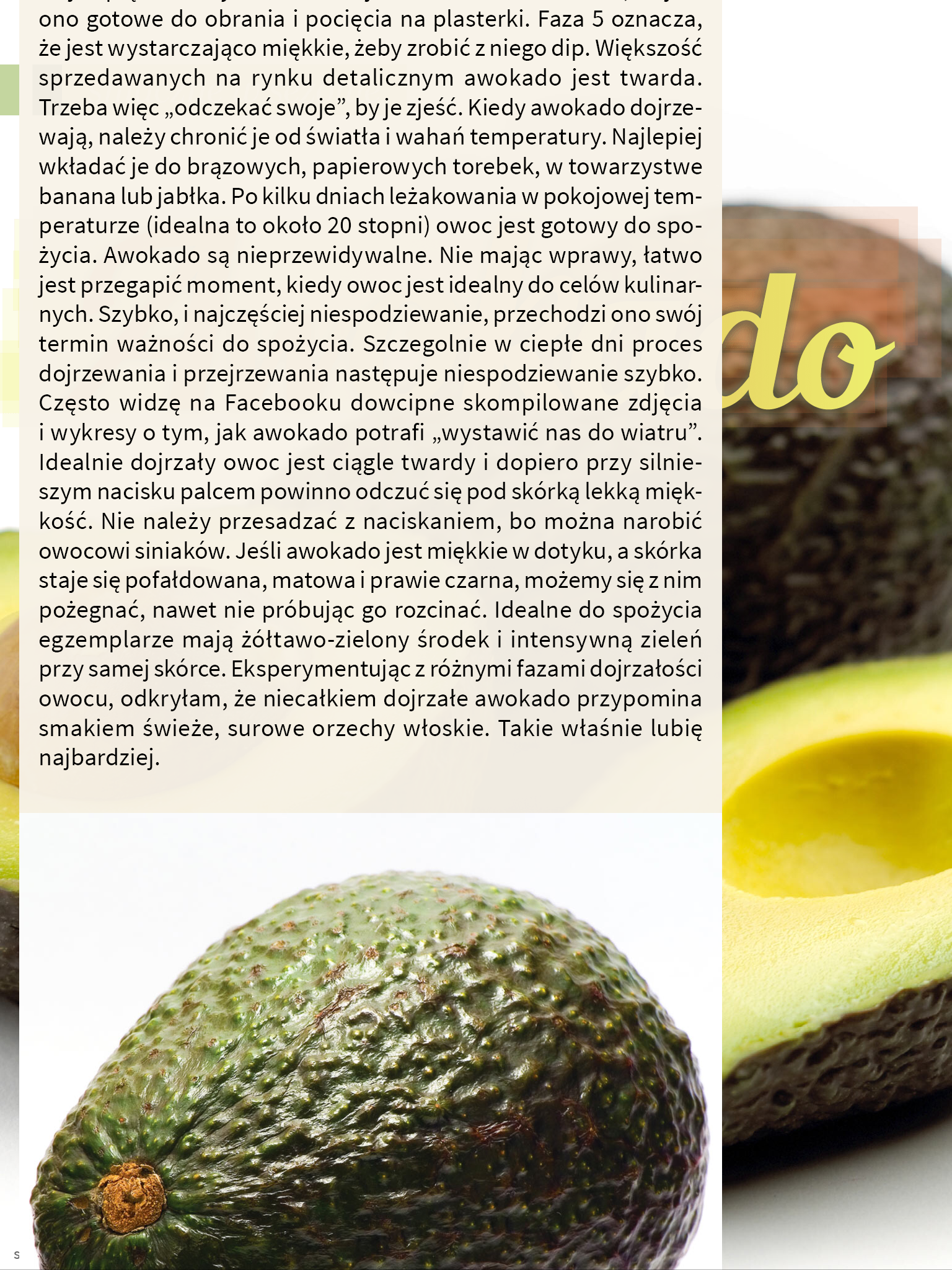 Dla wrześniowego numeru Magazynu SMAQ (wrzesień 2014) przygotowałam felieton o awokado oraz serię autorskich przepisów z użyciem tego owocu. Dziś na łamach mojego blogu reedytuję felieton.