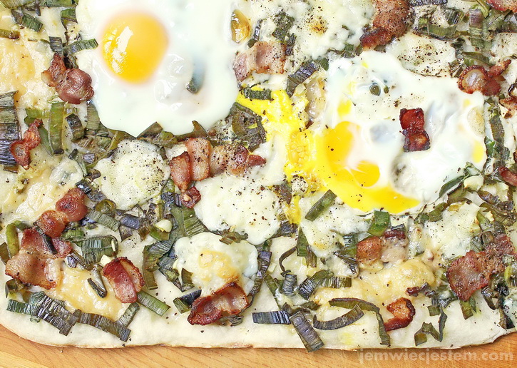 Dziś reedytuję na łamach mojego blogu przepis na pizzę, która zawiera trzy proste składniki bliskie polskim podniebieniom. Boczek, por i jajko.