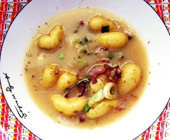 Żurek wiosenny z młodymi ziemniakami, szczypiorem i boczkiem