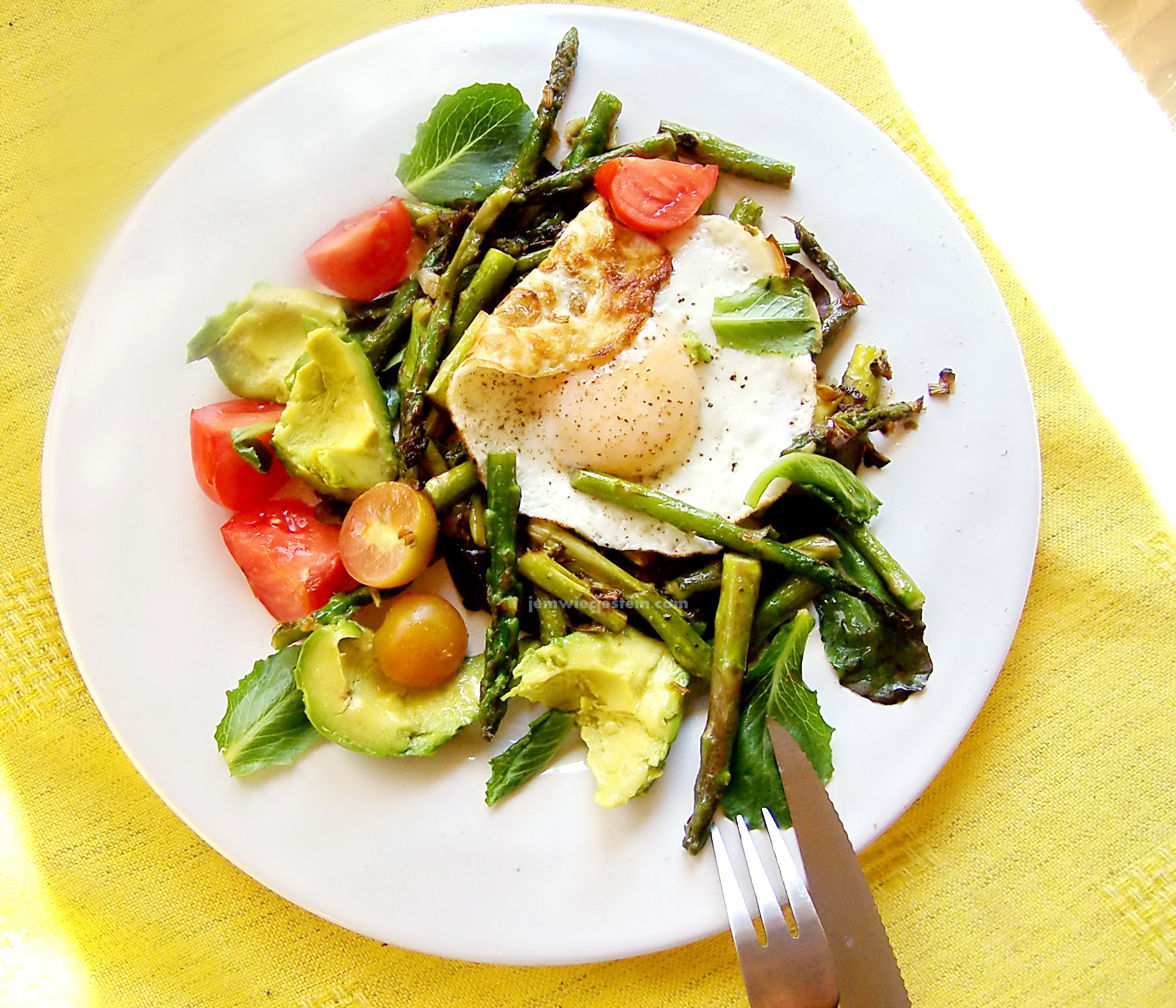 Good Morning breakfast loaded with seared asparagus. I opened couple of smaller avocados that were not super ripened yet and they tasted so different, they had that unique flavor that I remember form Poland, the flavor of freshly picked walnuts. They were so delicious ... Szparagowe śniadanie na dzień dobry. Dodałam kilka mniejszych rozmiarem, niekompletnie dojrzalych avocado i miały one smak świeżych włoskich orzechów, które pamietam z Polski. Pyszności...